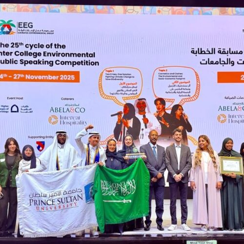اختتمت مجموعة عمل الإمارات للبيئة بنجاح الدورة الخامسة والعشرين من مسابقة الخطابة البيئية السنوية بين الكليات والجامعات والتي تغطي المنطقة العربية وخارجها. عُقدت هذه المسابقة في الفترة من 24 إلى 27 نوفمبر 2025 في كليات التقنية العليا – حرم المدينة الأكاديمية. وفي إنجازٍ تاريخيٍّ هامٍّ بمناسبة اليوبيل الفضي، جمعت هذه الفعالية الهجينة ثنائية اللغة (الإنجليزية/العربية)، […]