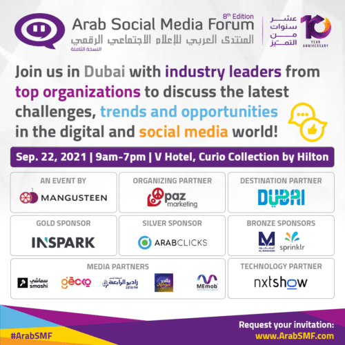 تنطلق النسخة الثامنة من المنتدى العربي لوسائل التواصل الاجتماعي – وهو حدث من تنظيم شركة مانغوستين – في 22 سبتمبر 2021 ليوم كامل في فندق V Hotel Dubai ، Curio Collection by Hilton. سيكون المنتدى، الذي تديره وتنظمه محليا شركة باز للتسويق مؤتمرًا استثنائيًا يعقد لأول مرة في دبي. كبار المتحدثين من القطاعين الحكومي والخاص الى جانب الشركات التكنولوجية ستجتمع لمناقشة آخر التحديثات والتحديات […]