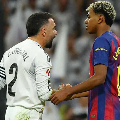 كشفت تقارير إعلامية عن تطورات جديدة بشأن الأزمة التي حدثت في “كلاسيكو” الكرة الإسبانية الأحد الماضي. أثارت تحركات مفاجئة على مواقع التواصل الاجتماعي جدلاً واسعًا في الساعات الأخيرة بعد أن قام الثنائي الشاب لامين يامال وبيدري بإلغاء متابعتهما لقائد منتخب إسبانيا داني كارفخال عبر إنستغرام، في خطوة فسّرها البعض على أنها امتداد للتوتر القائم بين […]
