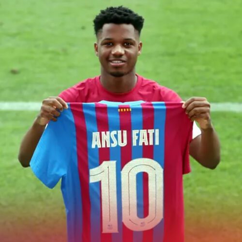 منحت إدارة نادي برشلونة الإسباني رقم 10، الذى كان يحمله البرغوث الأرجنتيني ليونيل ميسي لاعب الفريق السابق، ونجم باريس سان جيرمان الحالي، للموهبة الإسبانية أنسو فاتي. ونشرت الصفحة الرسمية لنادي برشلونة فيديو لأنسو فاتي، عبر موقع التواصل الإجتماعي “تويتر”، وهو يرتدى قميص برشلونة الذى يحمل رقم 10 بعد أن أصبح فارغًا بعد رحيل ميسي.